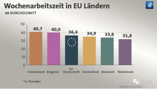 而根据德国劳工部最近统计的数据显示,德国人平均每周的工作时间为34.9小时,比欧盟的平均水平还少1.5小时,与此同时,2017年德国的劳动生产率比欧盟平均水平还高了27%。与之相比,欧盟国中公民每周工作时间最长的则是一度濒临破产的希腊(40.7)。