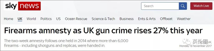 侧面一个数据,也许比前面提到的枪支犯罪数量更能说明问题:天空新闻去年11月的一则报道提到,在2014年之后首次再度开展的“枪支赦免周”,英国人总共自愿上缴了超过6000支非法枪支,比三年前的总量上升了27%。