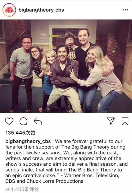 “We’re incredibly grateful for our partnership with Warner Bros。, Chuck Lorre Productions and a brilliant cast and crew that has made such a ‘big bang’ and lasting legacy on the television landscape。”