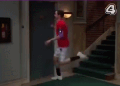 围绕着楼梯也发生了不少有趣的事儿,还记得谢尔顿委屈巴巴蹲在楼梯口的样子吗?
