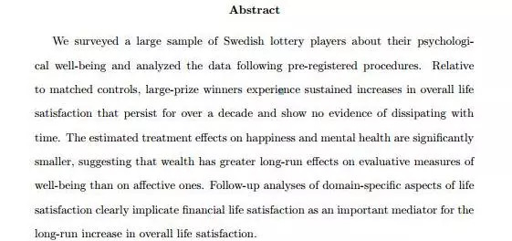 这三位研究人员在长期的研究之后,还写了一篇相关论文,论文的题目是《彩票财富对心理健康的长远影响》。