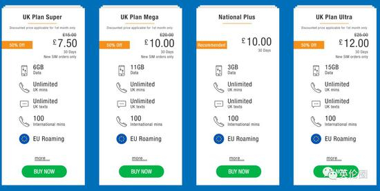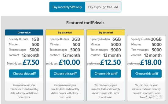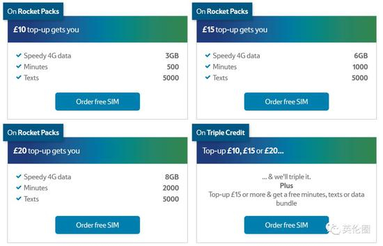 4)10镑起的套餐短信随便发、电话随便打。25镑就能变成随心所欲的流量暴发户~
