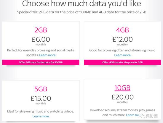 和其他运营商的10镑套餐相比流量较少,不过从14镑开始的套餐,流量还是很划算的。