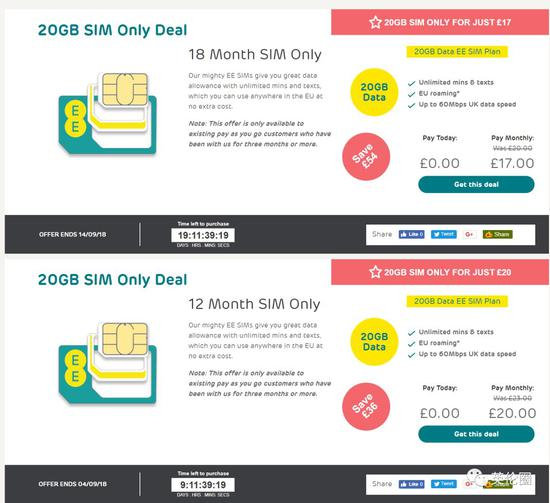 3)10镑套餐有包含Pay as u go的250分钟英国通话和10M流量,或者11镑的无限通话、短信和1GB流量的月卡。月卡支持欧盟漫游。
