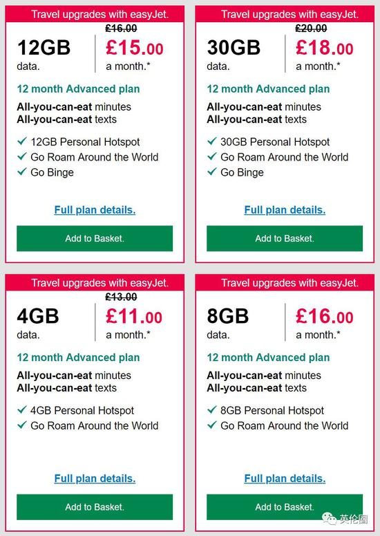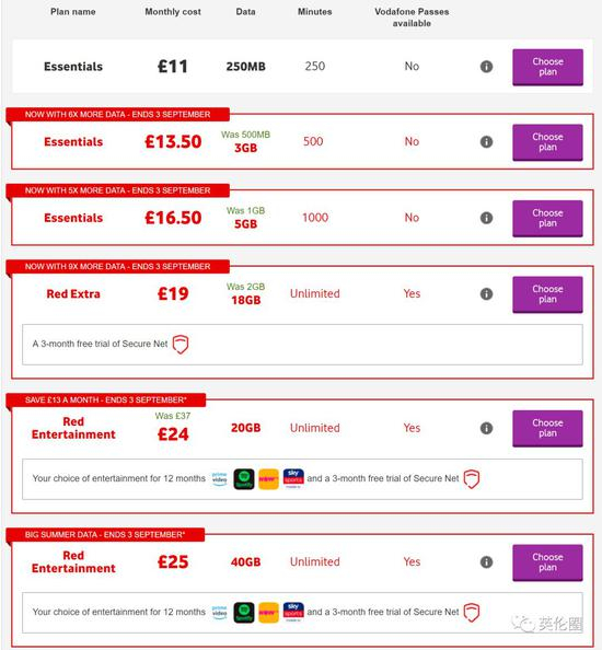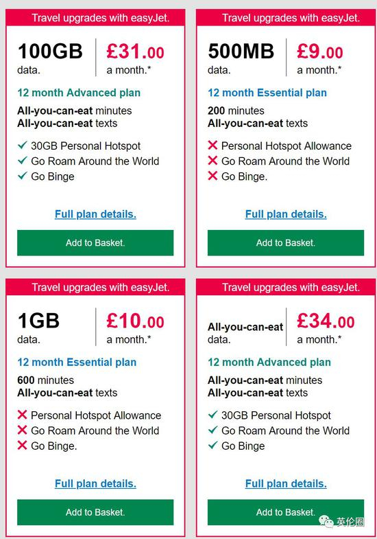 稍微贵一点的月租还支持12个月的sky sports/spotify/amazon prime video的会员可供选择。