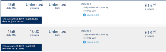 来看下O2最新的Pay As You Go和月卡的各式套餐吧~
