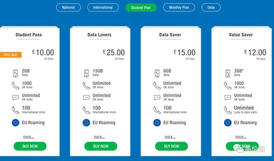 1)开学季经常会推出针对中国留学生的手机套餐,比如一个月的10镑套餐,有1000分钟的中国通话时间和1G的网络流量。另外,普通10镑套餐提供1G流量和国际、国内各500分钟的通话。