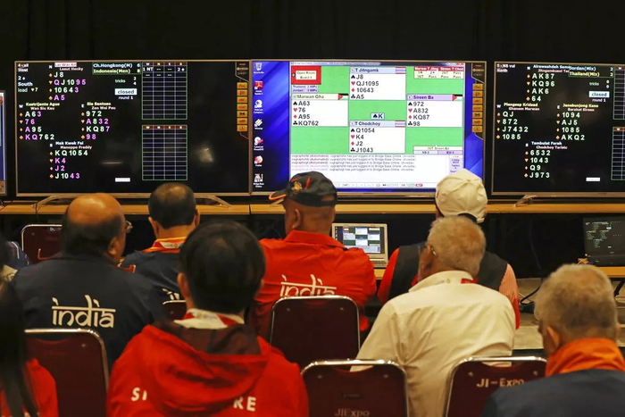 桥牌也是一项以脑力取胜的体育项目,首次入选亚运会。该项目集结了本届亚运“最老”和“最有钱”的选手,吸引了很多媒体报道。