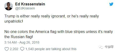 网友:“特朗普要么真的很无知,要么他真的很不爱国!没有人会用蓝条纹来填充美国国旗,除非它真的是俄罗斯国旗”!