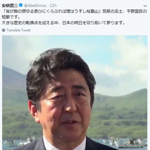 安倍上周日在视察地方时宣布,参选自民党总裁。27日晚,已经快两周没有更新推特的他发布了一段“本人出演”的视频,表达他参选总裁,希望继续执政三年的决心。