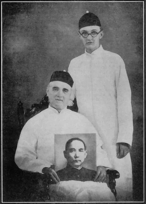 手捧孙中山像的林百克与其子