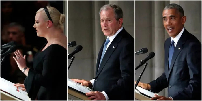 梅根、布什和奥巴马在今天麦凯恩的葬礼上致辞(图片来自:Business Insider)