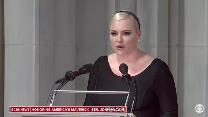 麦凯恩的女儿梅根在父亲葬礼上致辞。(图片来自CBS News截屏)