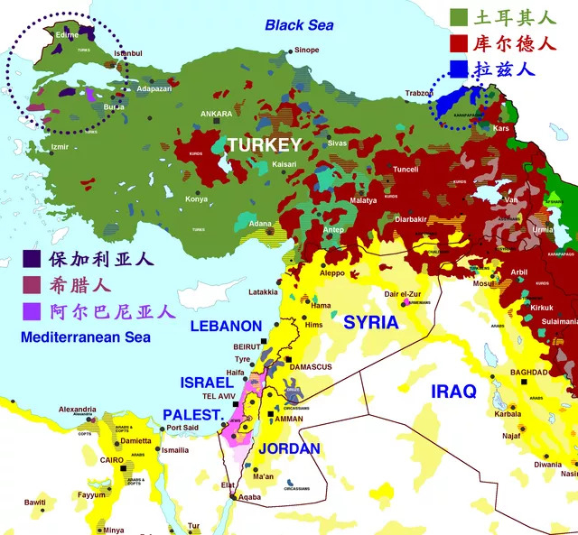 不过,土耳其也曾经有阔过的时候,奥斯曼帝国的最大版图曾经一度北达俄国边境,西到北非,控制着众多少数民族。在帝国时代,这些人成为了苏丹的臣民,便有机会向土耳其核心移民,而等奥斯曼帝国崩溃,现代土耳其共和国出现之后,这些人就成为了民族国家土耳其的不稳定因素。