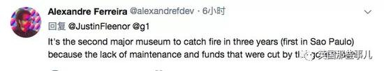 “这已经是3年内第二个发生火灾的大型博物馆了(第一个在圣保罗),因为它们缺少维护,而且政府砍了对它们的拨款”。