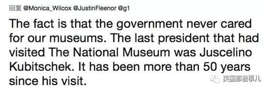 “事实是巴西政府根本就不管博物馆,最近一位去国家博物馆参观的总统是Juscelino Kubitschek,到现在也有50多年了。”