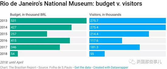 下面是这几年巴西国家博物馆的预算vs访客数据…