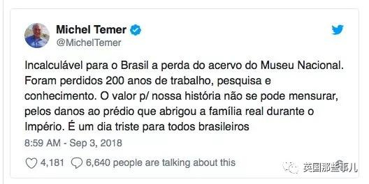 巴西总统Michel Temer发推表示: