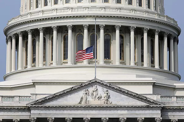 当地时间2018年8月27日,美国国会大厦,当日下午恢复降半旗致哀约翰·麦凯恩。