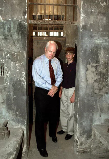 1967年10月26日,麦凯恩驾机执行任务被击落,在弹射出飞机时他摔断了双臂和一条腿。在一顿殴打后,麦凯恩被送到名为“河内希尔顿”的监狱,在那里麦凯恩得不到医治,他的膝盖膨胀到足球的大小。有几天他一直失去意识。醒来后等待他的是严酷的审讯、拷打。