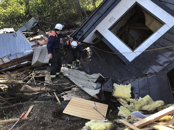 震中附近的厚真町发生多处严重山体塌方,是受灾最严重的地区,许多民宅被埋。