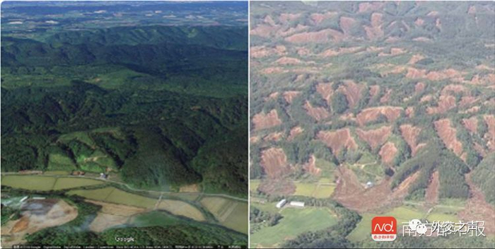 地震前后山体对比。