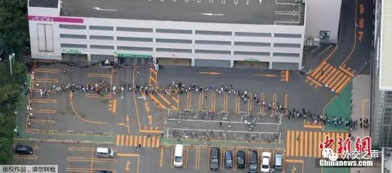 当地时间9月6日,北海道地震后,日本札幌民众排队进入一家超市购物。
