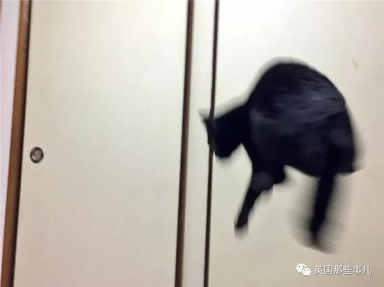 ▼想拍喵星人跳跃的画面,但智能手机最多只能拍成这样了吧