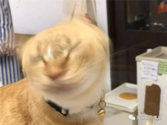 而狸花猫的表情则看起来挣扎不已躲闪不及。