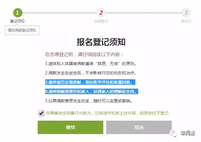 在中国红十字会中国人体器官捐献管理中心的登记须知里面,就有明确写出:最终能否实现捐献,需经医学评估和家属同意以及请将捐献意愿告知家人,获得家人的理解和支持。
