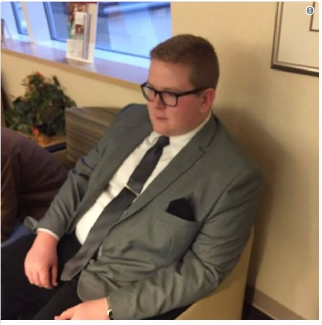 弟弟穿的很正式、西装革履地等在待产室外面,因为——