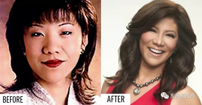 对比照很明显,中国特色的眼睛和鼻子变得更有欧美味道。陈茱莉也承认,这样整是为了减少自己的亚裔形象。