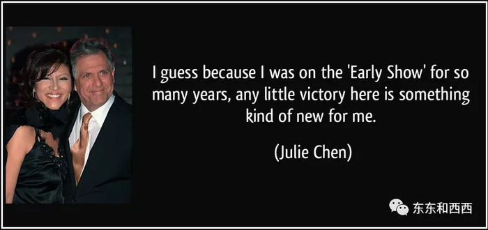 上世纪80年代,亚裔在美国的地位很低,当时的主流媒体上如果能出现一张亚洲人的脸,不管是中国人还是日本人、韩国人,那都是件大事。有一天,陈茱莉她爸正在看电视,突然就喊起来:大家快来,快点看,有个亚洲人在播新闻。从那时开始,梦想的种子就在陈茱莉的心里种下了。