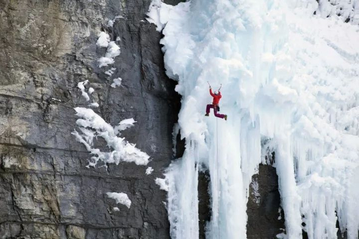 2013年11月6日,登山爱好者珍·奥尔森正在攀爬落基山脉。每次攀爬耗费4至6小时,必须全神贯注。