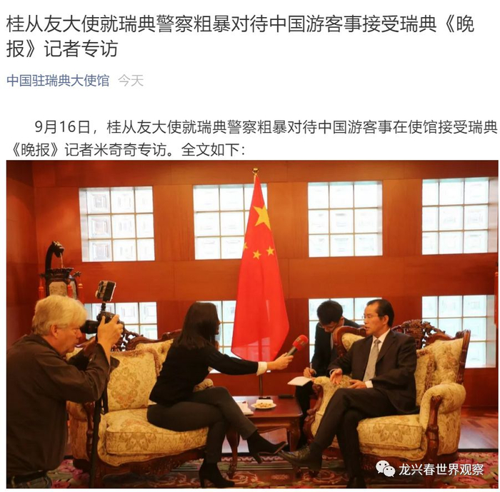 某些人还阴谋论地认为中国使馆反应强烈是因为瑞典允许某大和尚到访,阴谋论很有解释力,但事情必须就事论事;同理,我们是不是也可以用阴谋论解释下瑞典警方的行为?是因为中国警方抓了一位瑞典公民?有人还说中国使馆是15号才交涉,而中国驻瑞典大使桂从友指出9月2号事件发生后中国使馆就有交涉,只是瑞典政府和警方一直没有回应。