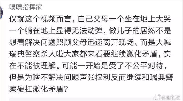 不管怎么说,既然引得大使馆都发文警告,那瑞典警方肯定是处理不当了。