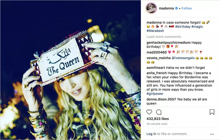 上个月麦当娜迎来了她60岁的生日,当时身在摩洛哥的她在社交网络上贴了这么一张照片。