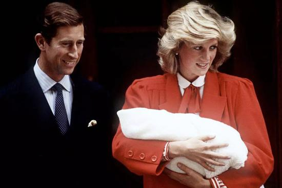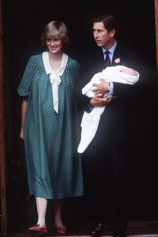 查尔斯和戴安娜分别在1982年和1984年迎来威廉和哈里,两次首露面查尔斯都选择了低调沉稳的装束,不抢眼,也很合理。