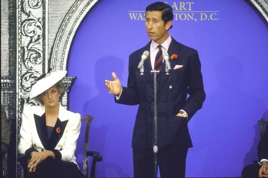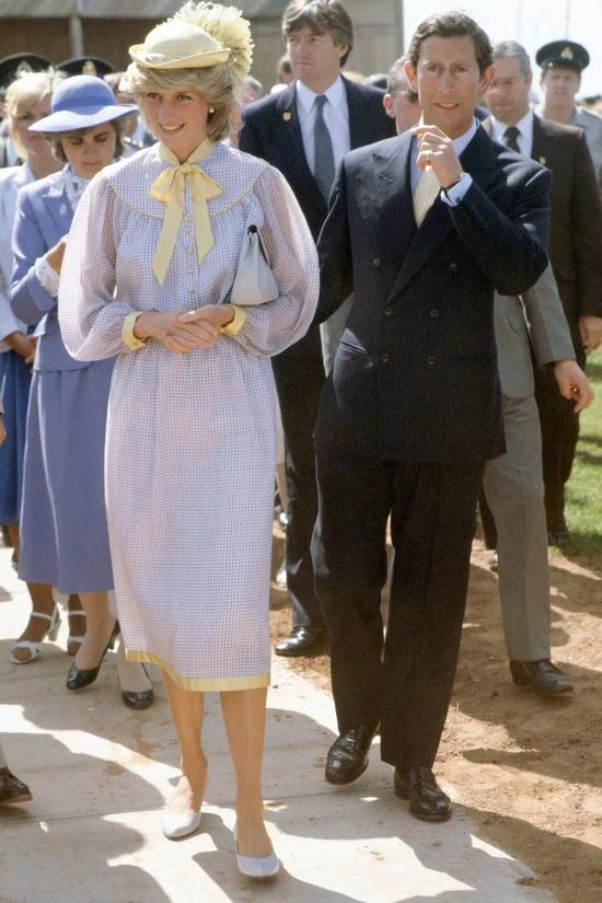 1983年和戴安娜到访加拿大,查尔斯穿着他钟爱的双排扣西装,并且深谙用相同颜色配饰呼应另一半的最高级情侣装搭配,起码领先当今时尚圈30年。
