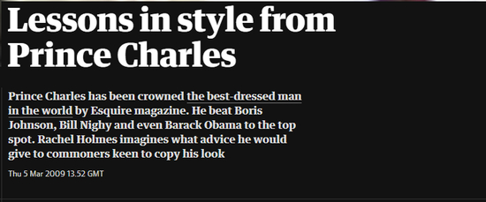Guardian从2009年起就跨界呼吁大家学习查尔斯style。