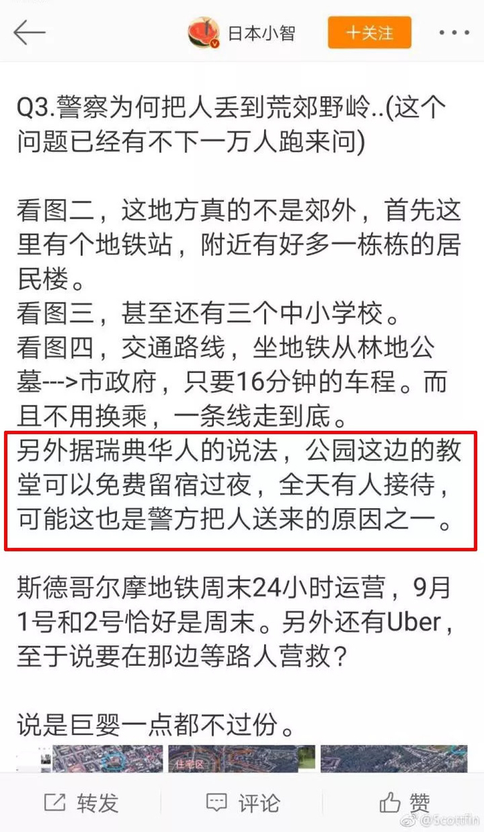 按照网上说法,把当事人送到郊区“冷静”是瑞典警方操作惯例,并非针对中国游客一家突发奇想。