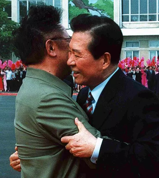 2000年6月14日,朝鲜平壤,金正日(右)与金大中(左)举行会谈。