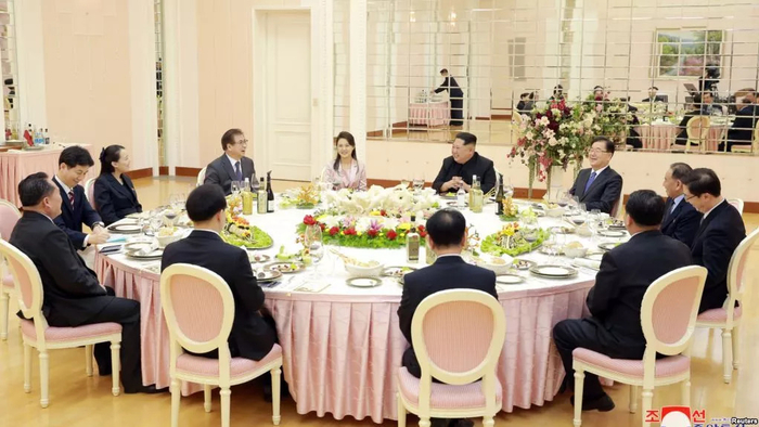 2018年3月,金正恩在平壤设宴接待来访的韩国总统特使团。