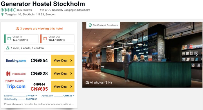 来自中国的游客曾先生,带着父母一家三口,到瑞典旅游,来到首都斯德哥尔摩,准备入住提前预定的酒店 : Generator Hostel Stockholm