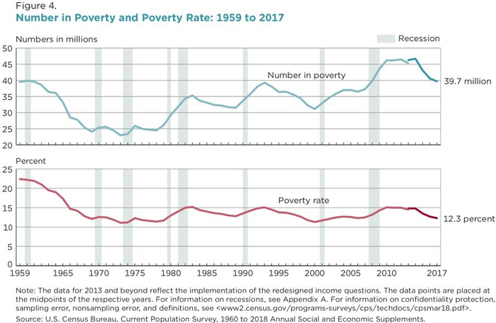 1959年至2017年,美国贫困人口数量和贫困率的变化趋势