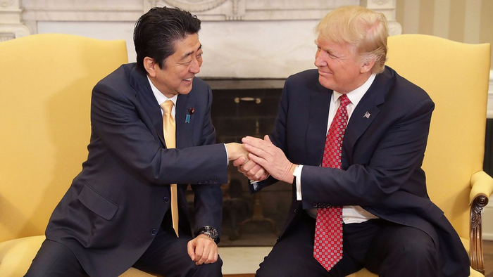 2016年美国大选,安倍打破常规提前站队,在竞选白热阶段访美,会见民主党候选人希拉里,冷落特朗普。而当年11月特朗普意外当选,安倍再次打破常规,急急求见特朗普,在其未上任,政策不明之前与其会面,成功抢得第一。