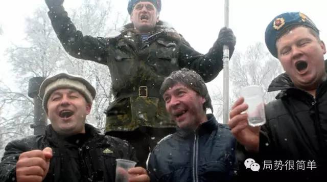 (正在喝酒的俄罗斯军人)