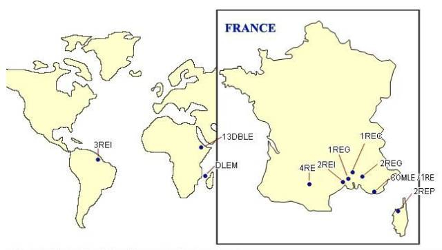 外籍兵团编制10个团,七个在法国本土,三个在海外。