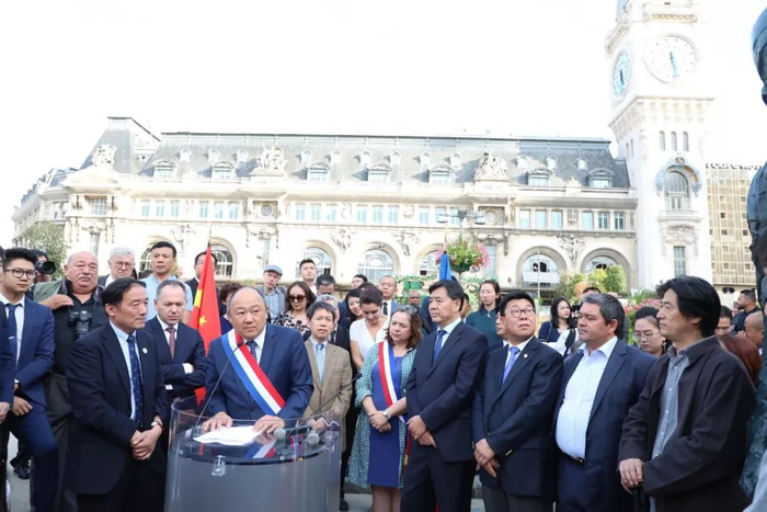 揭幕仪式上,中国驻法大使翟隽、山东省人民政府副秘书长孙建功、“中国人民对外友好协会”副会长户思社、察哈尔学会会长韩方明,以及巴黎市长特别代表、副市长布鲁思(Jean Bernard BROS)、法国国会议员、法中友好小组主席陈文雄、巴黎十二区区长巴拉蒂 - 埃尔巴兹(Catherine Baratti-Elbaz) 、法铁车站管理公司总经理罗贝尔、雕塑家李小超以及约200多名华侨华人和当地民众共同见证了这一庄严时刻。