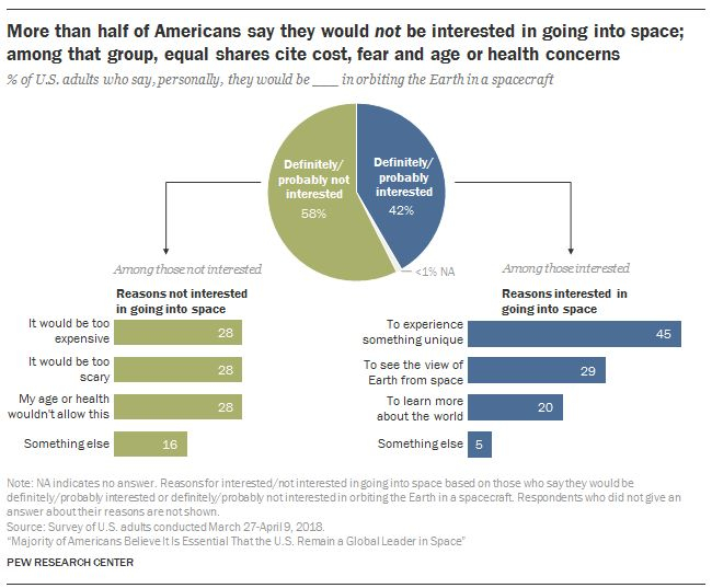 太空旅游?大多数美国人认为这不适合他们,但63%的千禧一代感兴趣!!